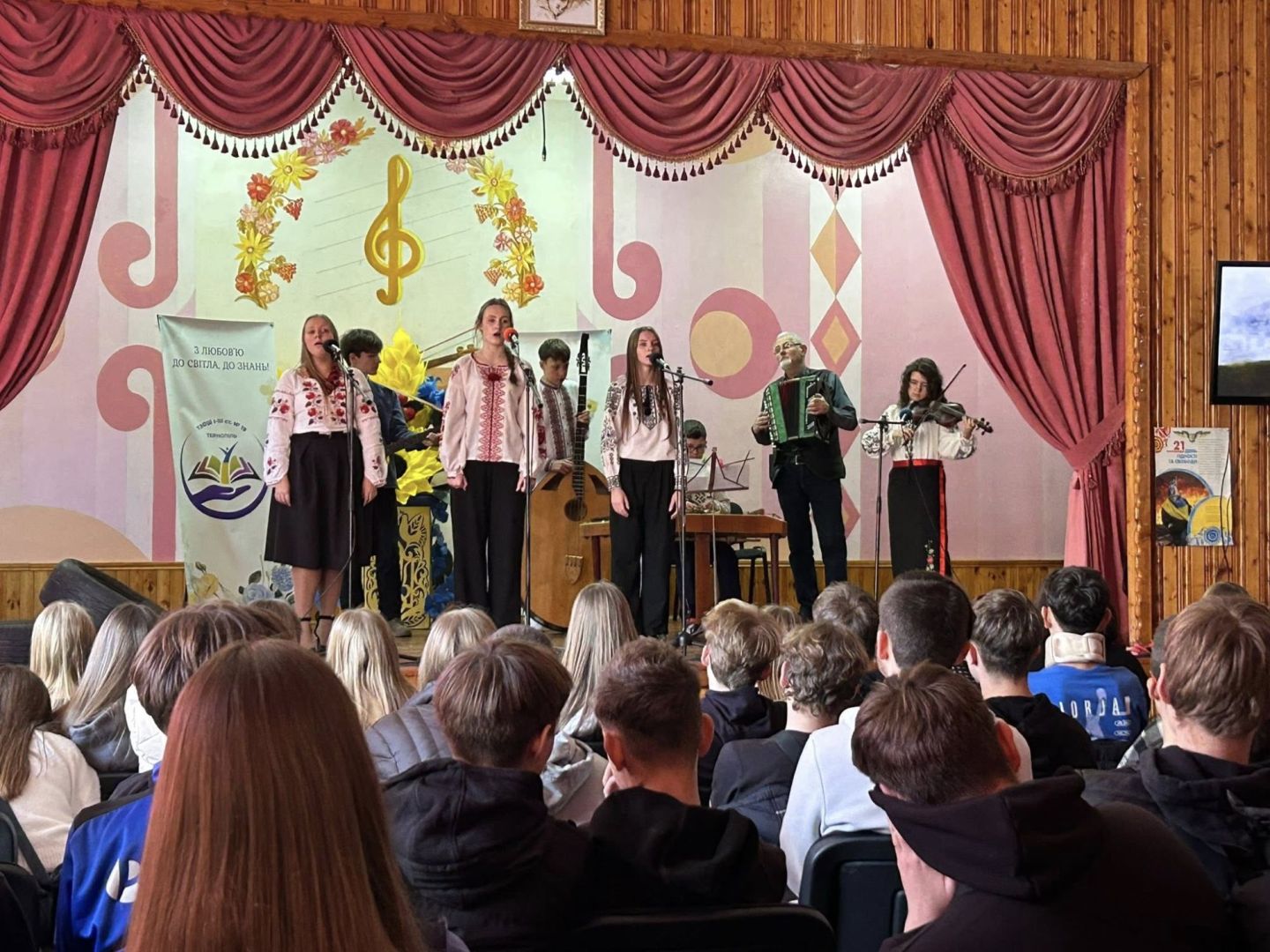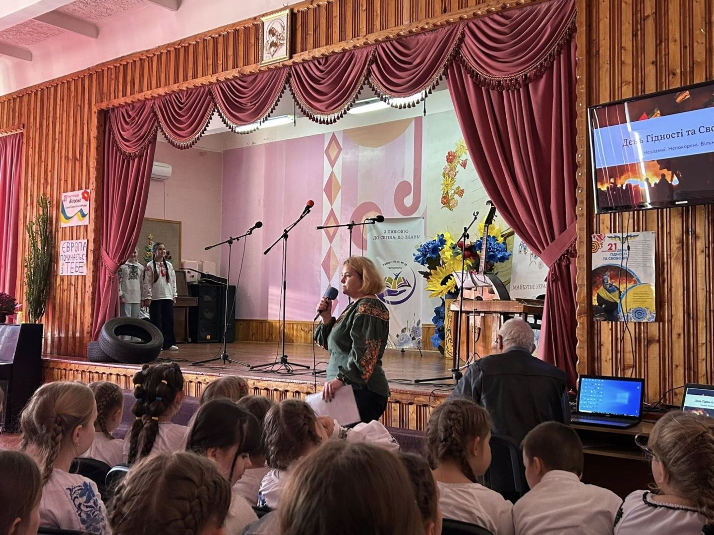 Учні 10-Б класу під керівництвом Віри Стасишин провели змістовний та зворушливий захід для 9-х класів та 7-Б класу, присвячений Революції Гідності та Свободи.