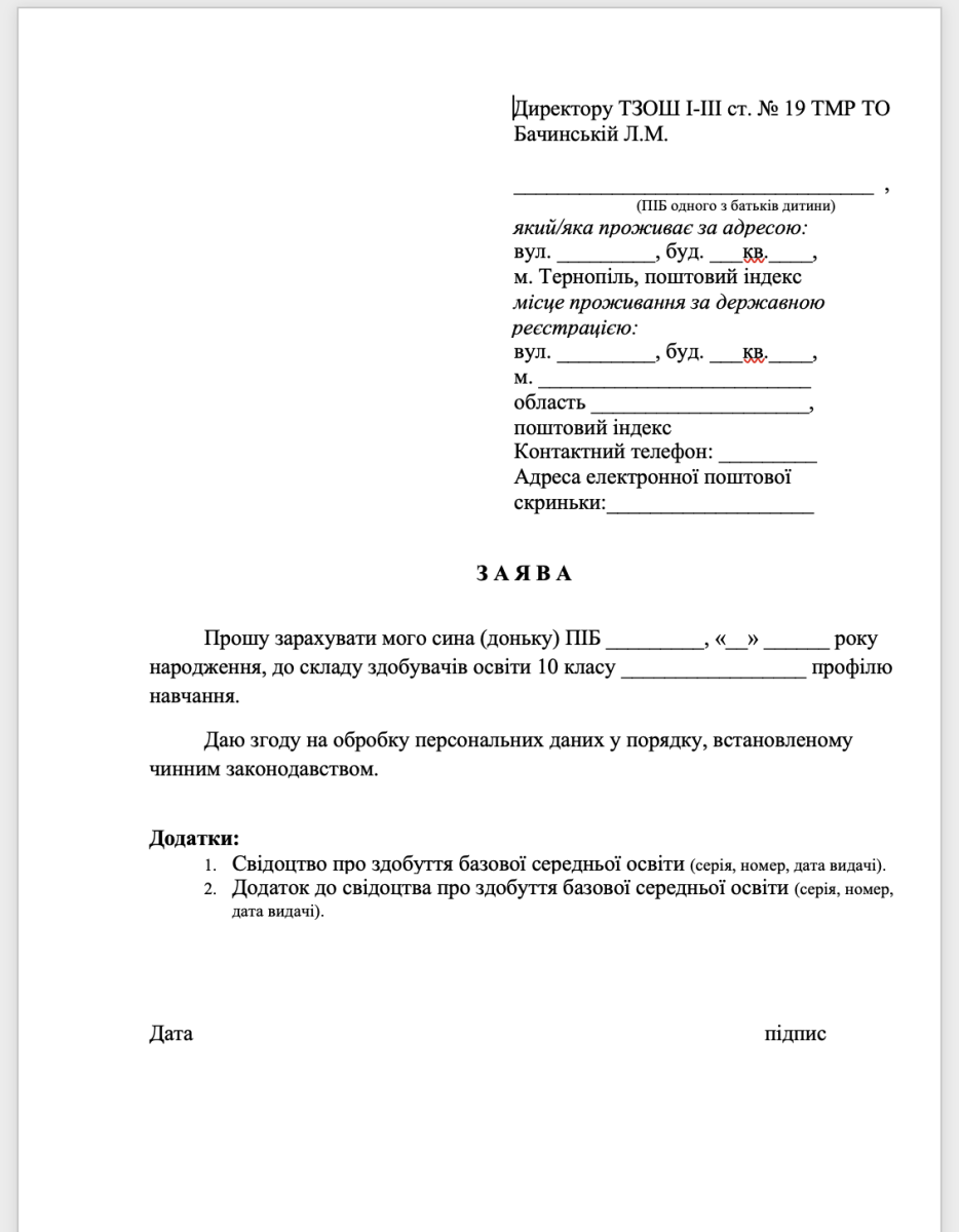 Зразок заяви
